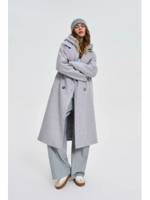 Dlouhý kabát s odnímatelnou kapucí, šedý