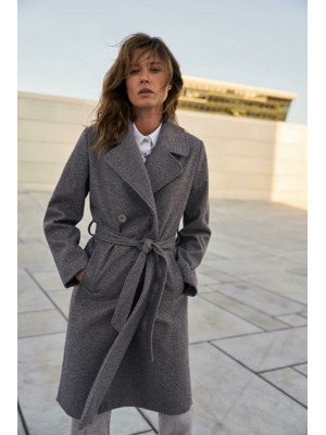 Šedý kabát s páskem