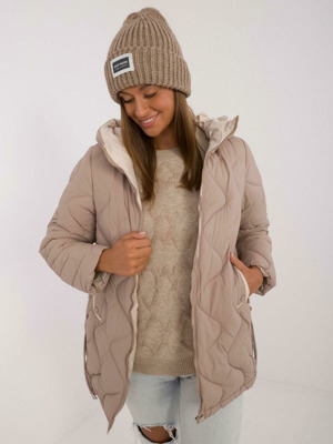 Prošívaná přechodná podzimní bunda v béžové barvě s kapsami