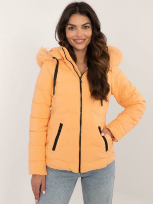 Světle ozanžová krátká přechodná podzimní bunda s kapsami